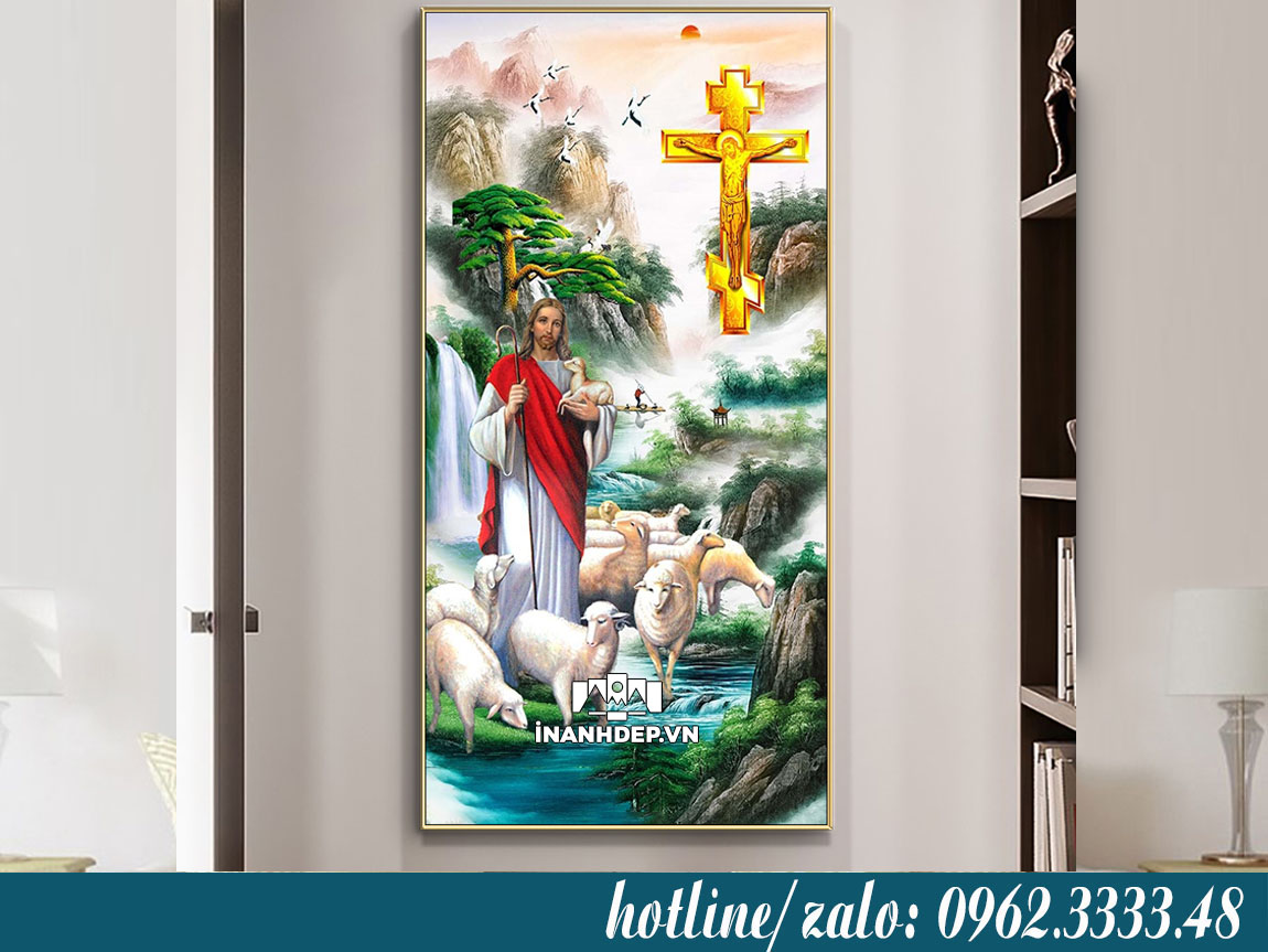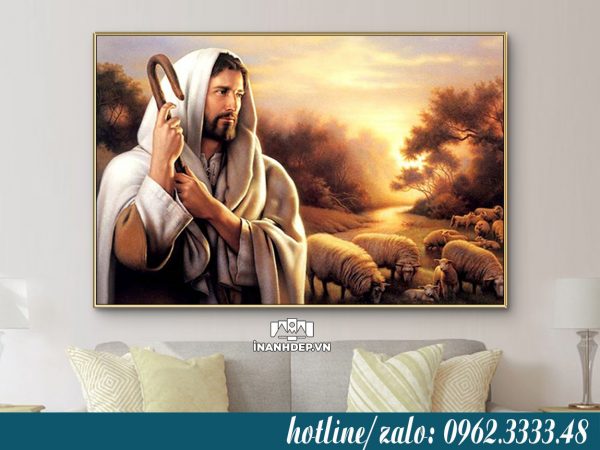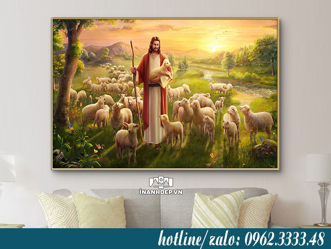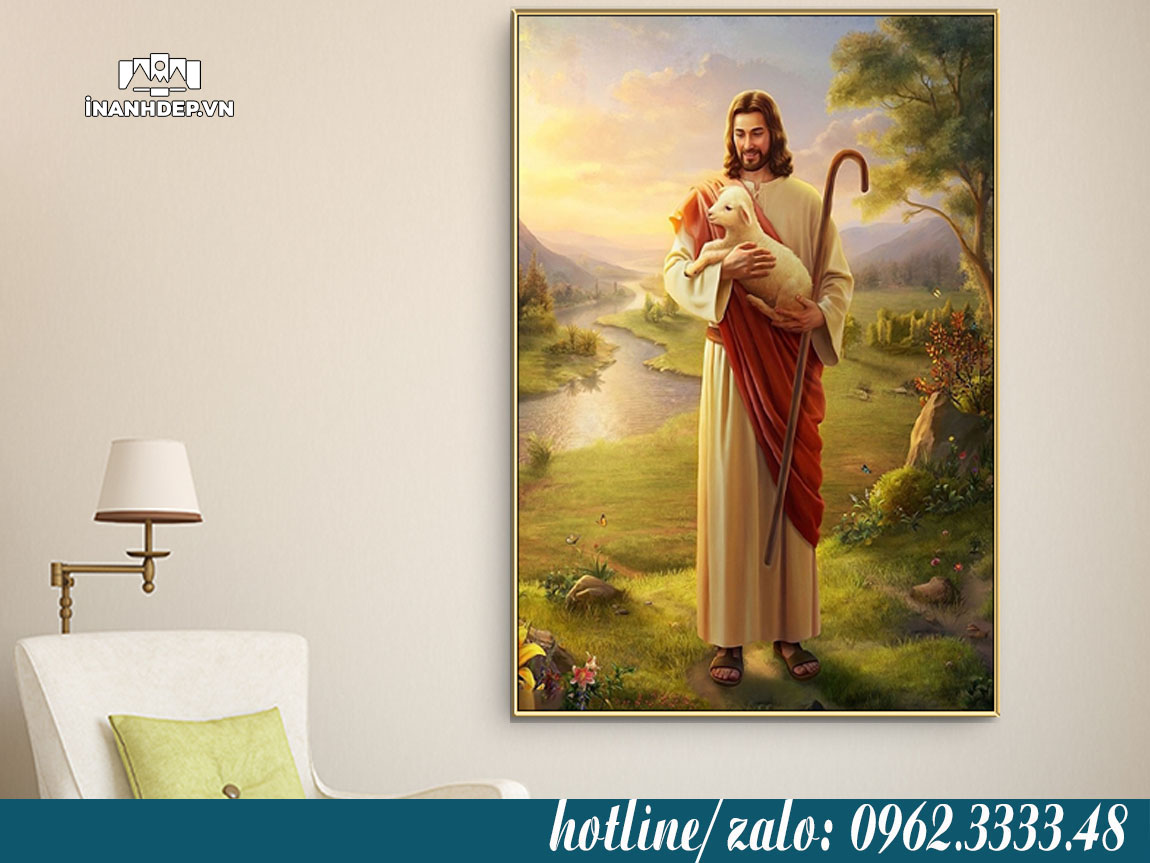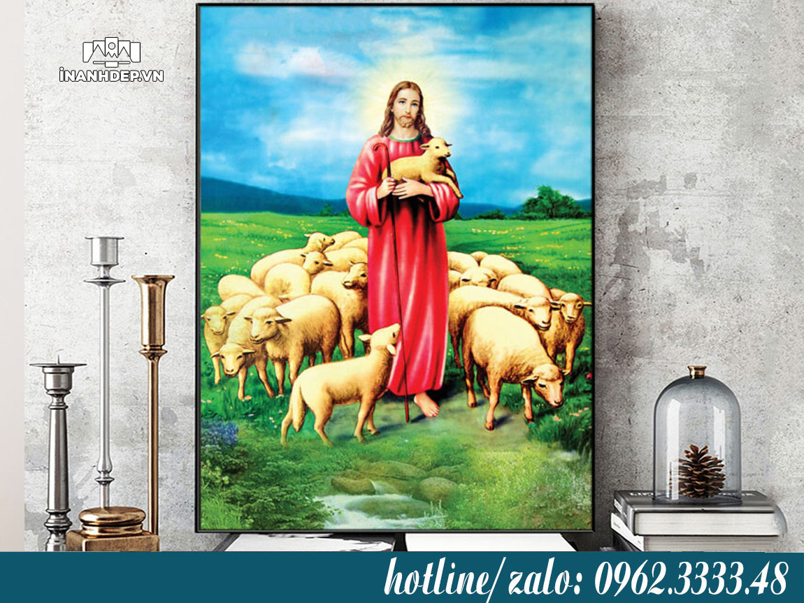 Hình ảnh Chúa Giêsu dịu dàng bồng chiên hoặc dẫn đàn chiên mang ý nghĩa Người là Đấng dẫn dắt và bảo vệ mỗi tín hữu. Mẫu tranh này phù hợp với những gia đình muốn cầu xin sự soi sáng và định hướng trong cuộc sống.
