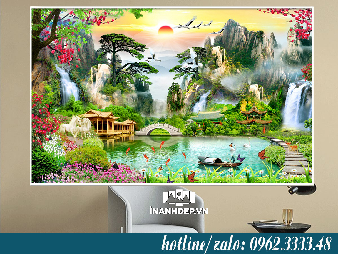 Nếu bạn là người yêu thích tranh sơn thủy thì INANHDEP chính là địa chỉ để bạn ghé thăm. Dịch vụ làm tranh treo tường theo yêu cầu có thể nhận hàng ngay trong ngày hoặc ngày hôm sau. Kho file ảnh mẫu rất nhiều mẫu tranh để khách chọn.