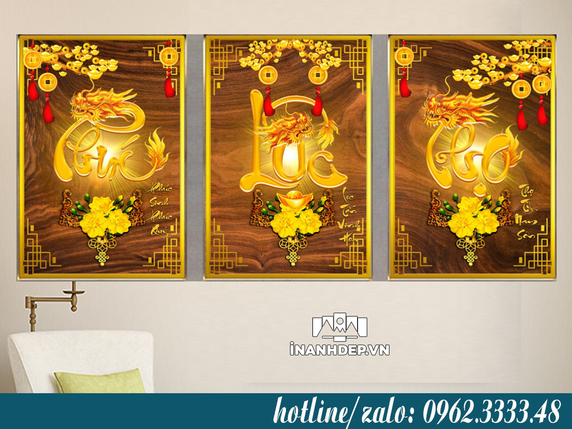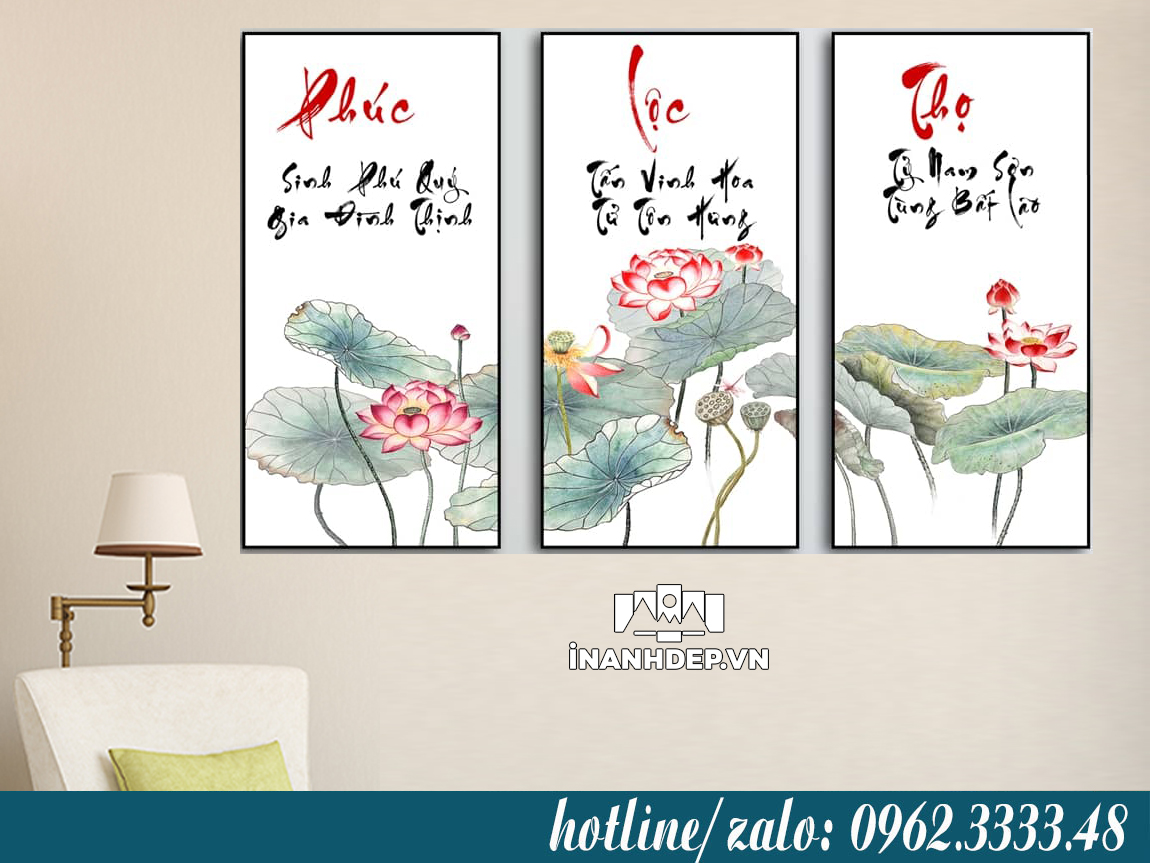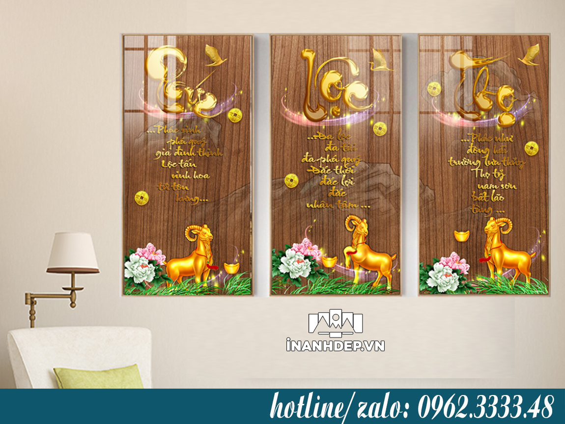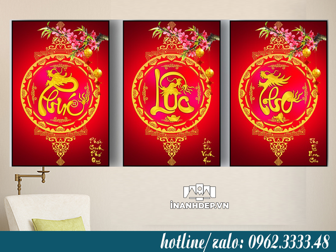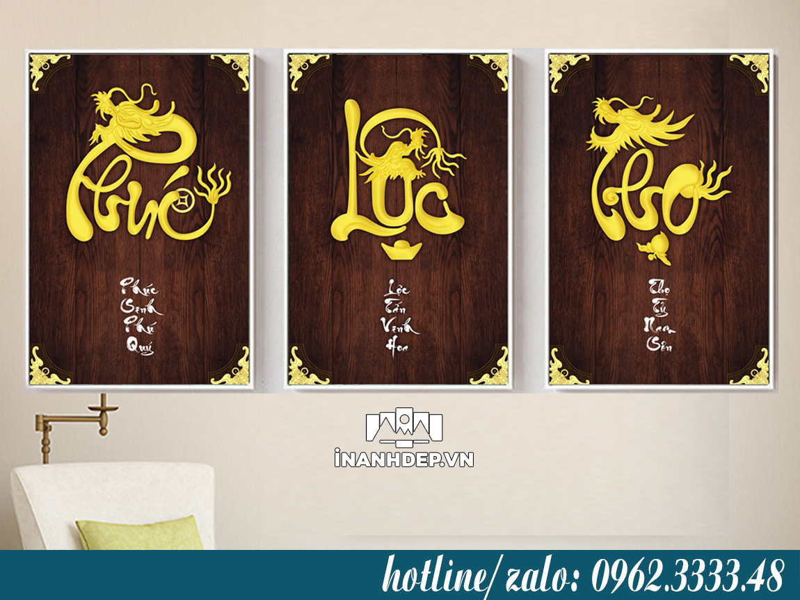 Bộ tranh thư pháp phúc lộc thọ phù hợp hầu hết các không gian phòng khách truyền thống và hiện đại, đặc biệt cho gia đình.