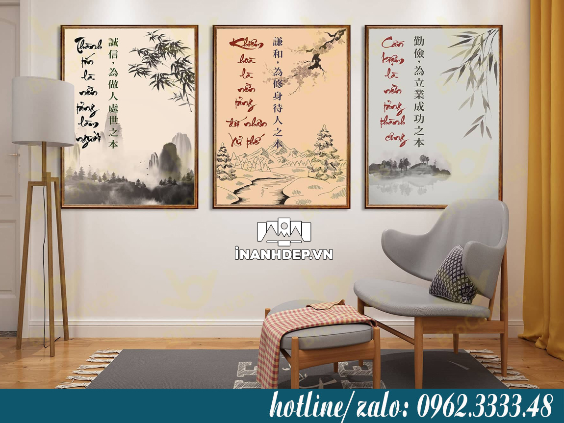 Dưới đây là một số mẫu tranh thư pháp tổng hợp, nếu quý khách có nhu cầu in tranh để treo hoặc làm quà tặng hãy liên hệ ngay với chúng tôi để được tư vấn nhanh nhất, nếu những mẫu này chưa làm quý khách hài lòng chúng tôi còn nhiều mẫu khác để quý khách lựa chọn.